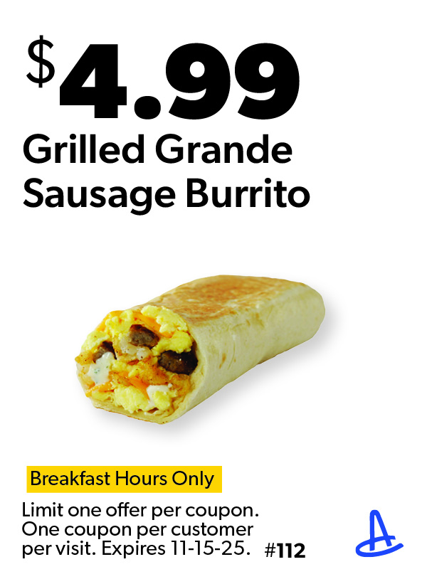 Grilled Grande Sausage Burrito Breakfast Hours Only