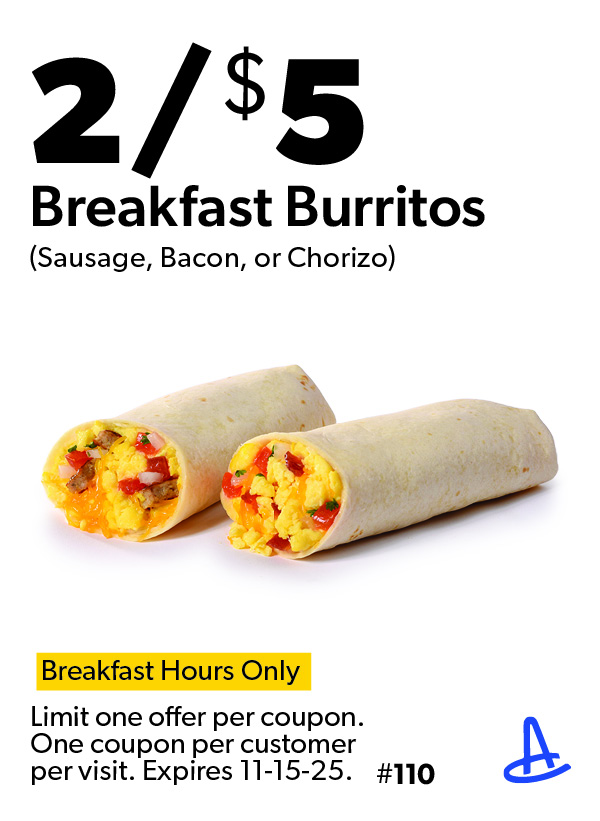 Two Breakfast Burritos for $5