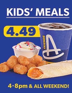Kids Meals Deal 4-8pm Weekdays and ALL Weekend
